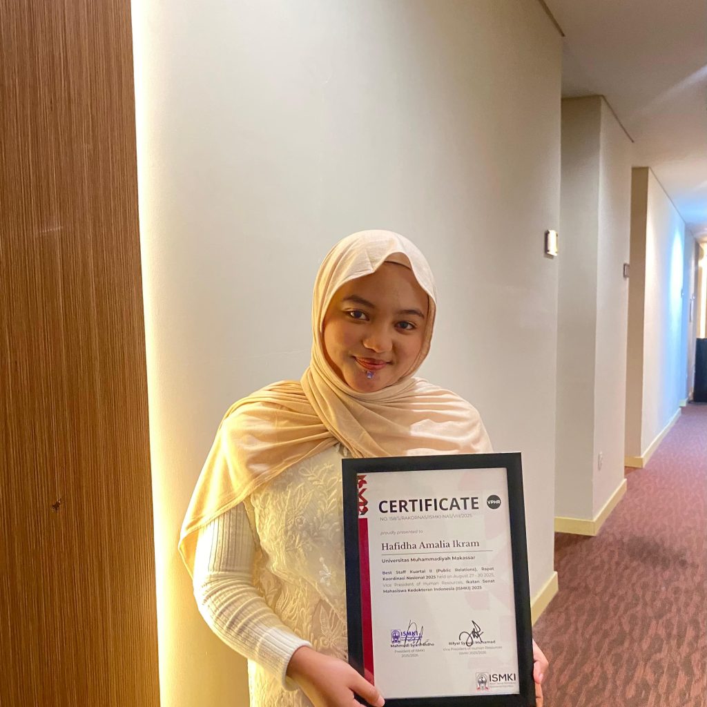 - Best Staff Quartal 2 Public Relations ISMKI National: An individual achievement was secured by Hafidha Amalia Ikram, who was named the Best Staff for Quarter 2 in the ISMKI National Public Relations Department, showcasing professionalism and effective work in building the organization’s image.