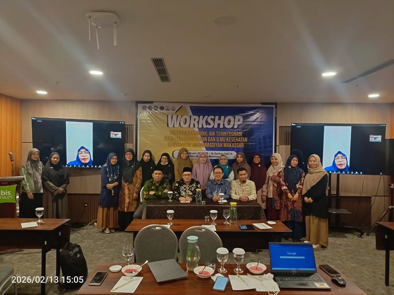 Fakultas Kedokteran dan Ilmu Kesehatan (FKIK) Universitas Muhammadiyah Makassar menggelar Workshop Penyusunan Modul Al-Islam dan Kemuhammadiyahan (AIK) Terintegrasi, yang dilaksanakan pada 13–14 Februari 2026 atau bertepatan dengan 25–26 Sya’ban 1447 Hijriah. Kegiatan ini berlangsung di Hotel Ibis Styles Makassar dan diikuti oleh pimpinan fakultas, ketua program studi, serta tim penyusun kurikulum.