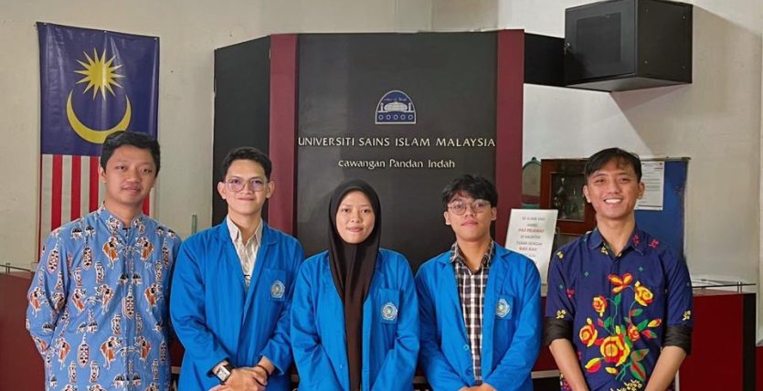 The students—Alif Fiqhiyah, Faiq Fathan, and Andi Chelsa—are participating as undergraduate students in a two-week series of academic activities at FPSK USIM. Their program includes thematic lectures, laboratory practicums, clinical exposure sessions, and scientific discussions with USIM students and academic staff.