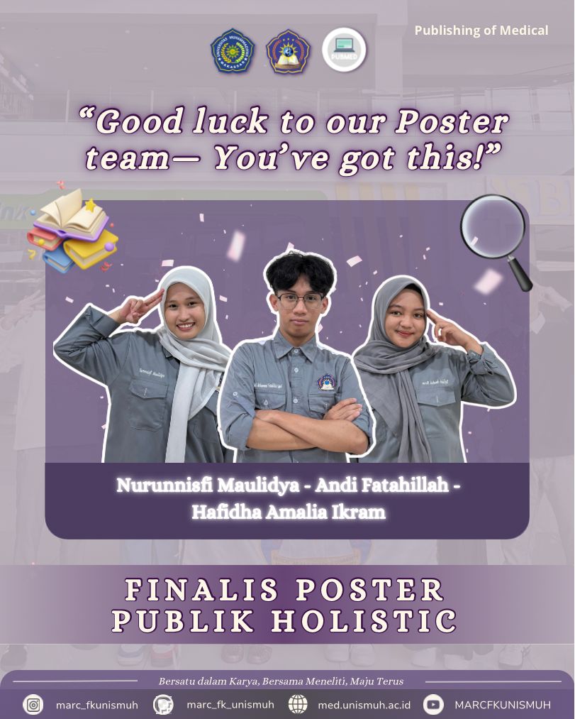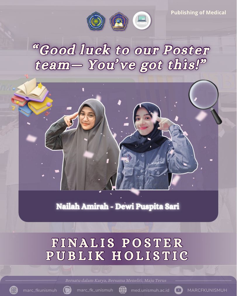 Meanwhile, the second team, composed of Nailah Amirah and Dewi Puspita Sari, explored the synergy between technological innovation and community-based healthcare services. Their poster drew attention from the judges for its strong scientific foundation and informative design.